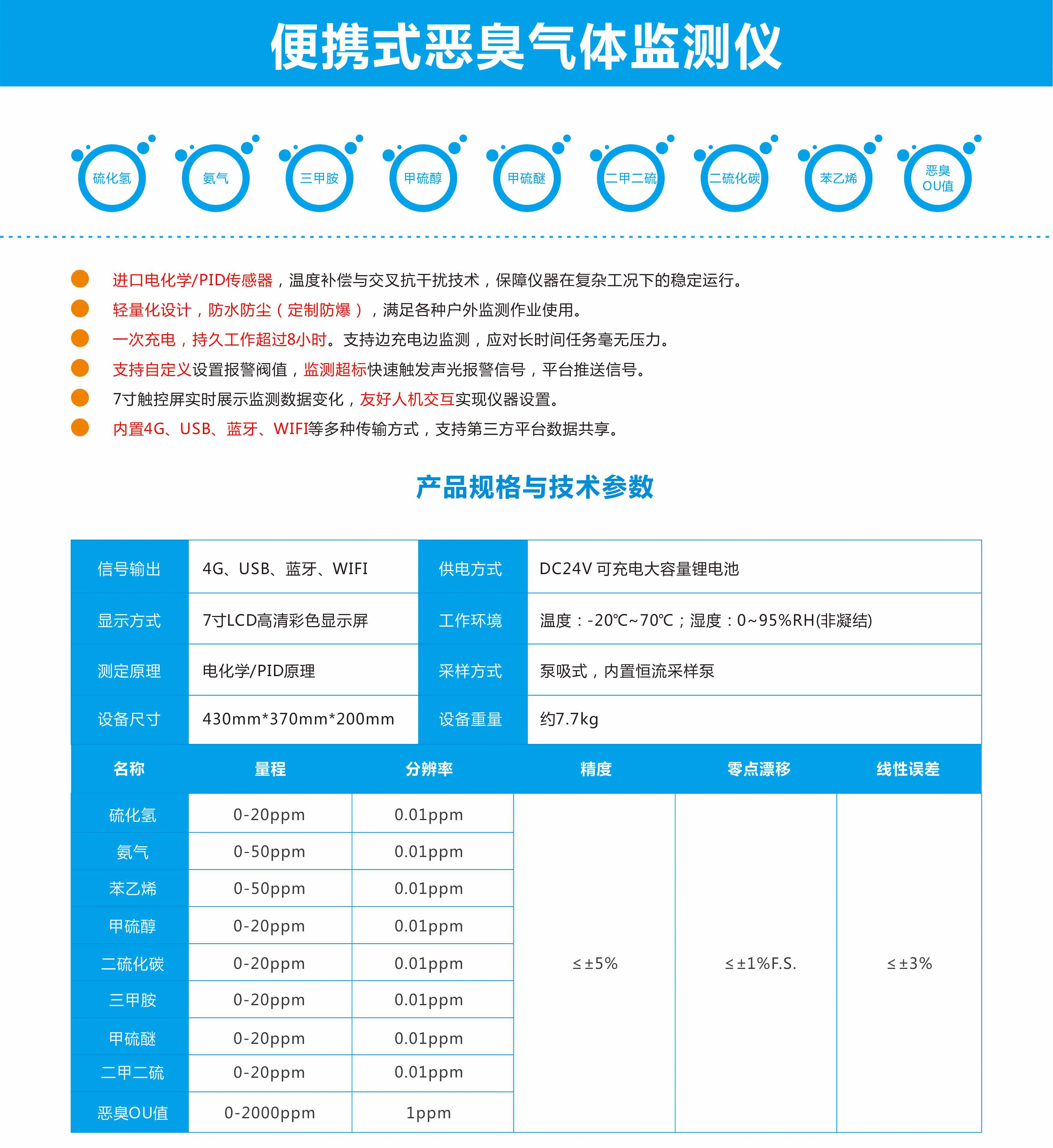 便携式恶臭监测仪凭借其小巧便携、操作简便、响应快速的特点,可实现现场快速采样、即时分析,帮助人员与技术人员第&一时间锁定污染源、量化污染程度,为环境、污染治理和应急事件处理提供关键数据支撑,有效解决传统监测方式的局限性,成为守护清新空气、化解环境矛盾的重要工具。